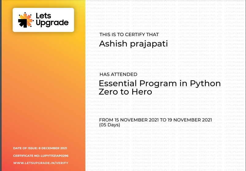 In this Python Essential i learn the basci of Python programming. Our teacher [name] tell us the benifits of python. This Essential is really cool.