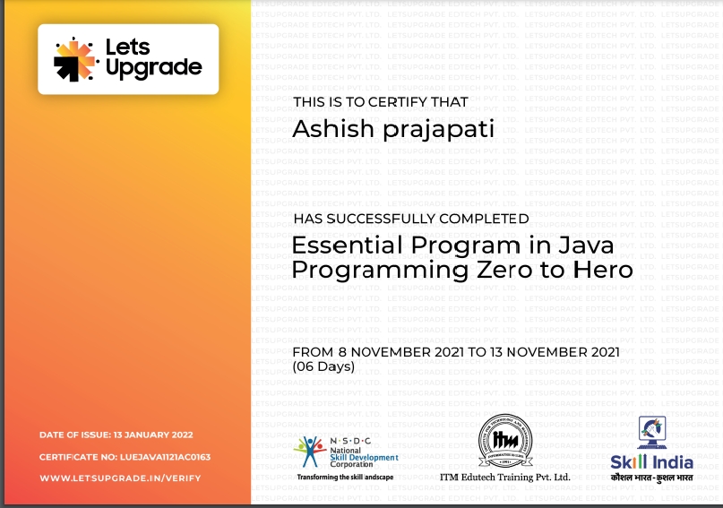 In this Java Essential i learn the basci of Java programming. Our teacher [name] tell us the benifits of Java. This Essential is really cool.
